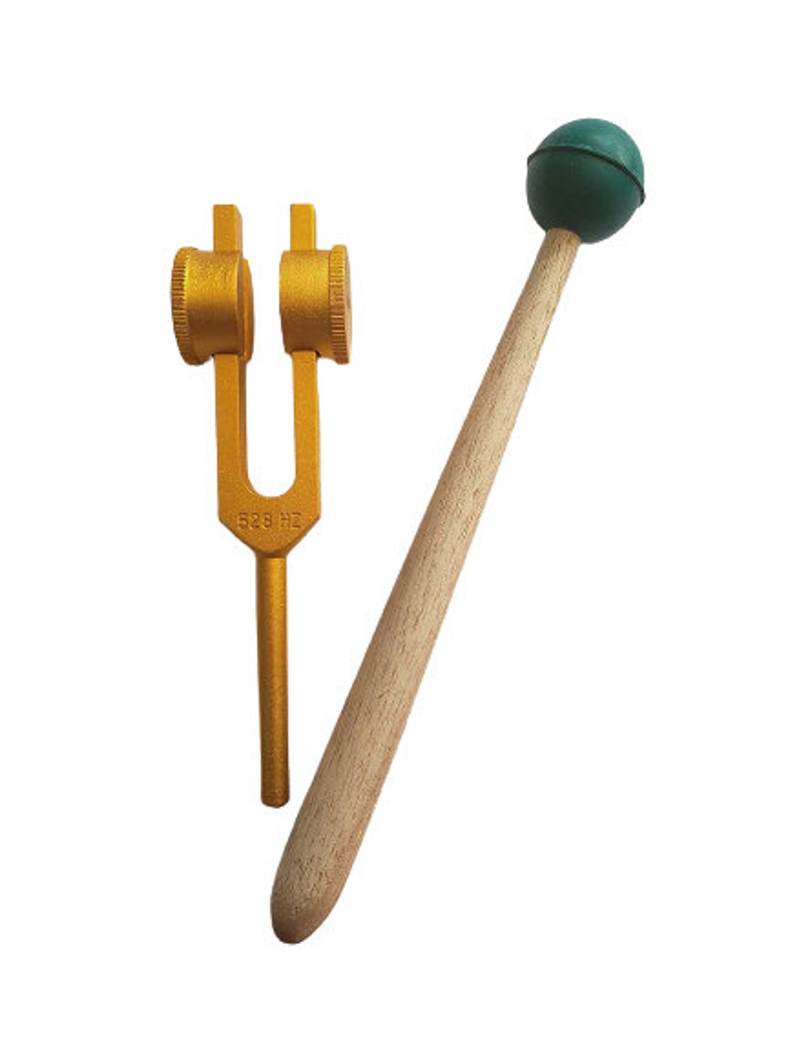 * Made in High Grade Aluminium and anodized with GOLD coating.* Tuning forks are used for healing because of their ability to emit vibrations and frequency. When a tuning fork is struck, it not only vibrates the fork itself, but it also vibrates the surrounding air space with the same frequency of vibration. This sends the vibration as an impulse through the air. This vibration can be harnessed to help increase the healing energy inside us.* These Forks work more on the Physical level. One can feel the vibration more stronger & at a deeper level, when its stem is placed on the body. This is due to the weights at the end of each prong.* The sound lasts longer, but is softer & more diffused. They are heavier in weight.* They move in a physically lesser motion. The feeling of the vibration is more subtle, when its stem is placed on the body. The sound does not last as long, but it is sharper & more crystallized.* The third note of the original 6 Sacred Solfeggio frequencies is “Mi” for “Miracles” and is 528 Hz. DNA repair refers to a collection of processes by which a cell identifies and corrects damage to the DNA molecules that encode its genome. Genomes are subject to damage by chemical and physical agents in the environment (e.g. UV and ionizing radiations, chemical mutagens, fungal and bacterial toxins, etc.) and by free radicals or alkylating agents endogenously generated in metabolism. DNA is also damaged because of errors during its replication. Frequency 528 Hz, the miraculous frequency for transformation and DNA repair. Frequency can help open your heart, prompt peace and hasten healing. It is the exact frequency used by genetic engineers throughout the world to repair the blueprint of life, DNA, the healthy core of which is a six-sided crystal of structured water. Dr Lee Lorenzen, a world-renowned biochemist working with water crystallization methods to rejuvenate DNA says “I was intrigued by the frequencies of the healing codes. The third frequency is well known to scientists working on DNA repair.” Dr Lorenzen believes this ‘528’ frequency might be beneficial in delaying ageing.