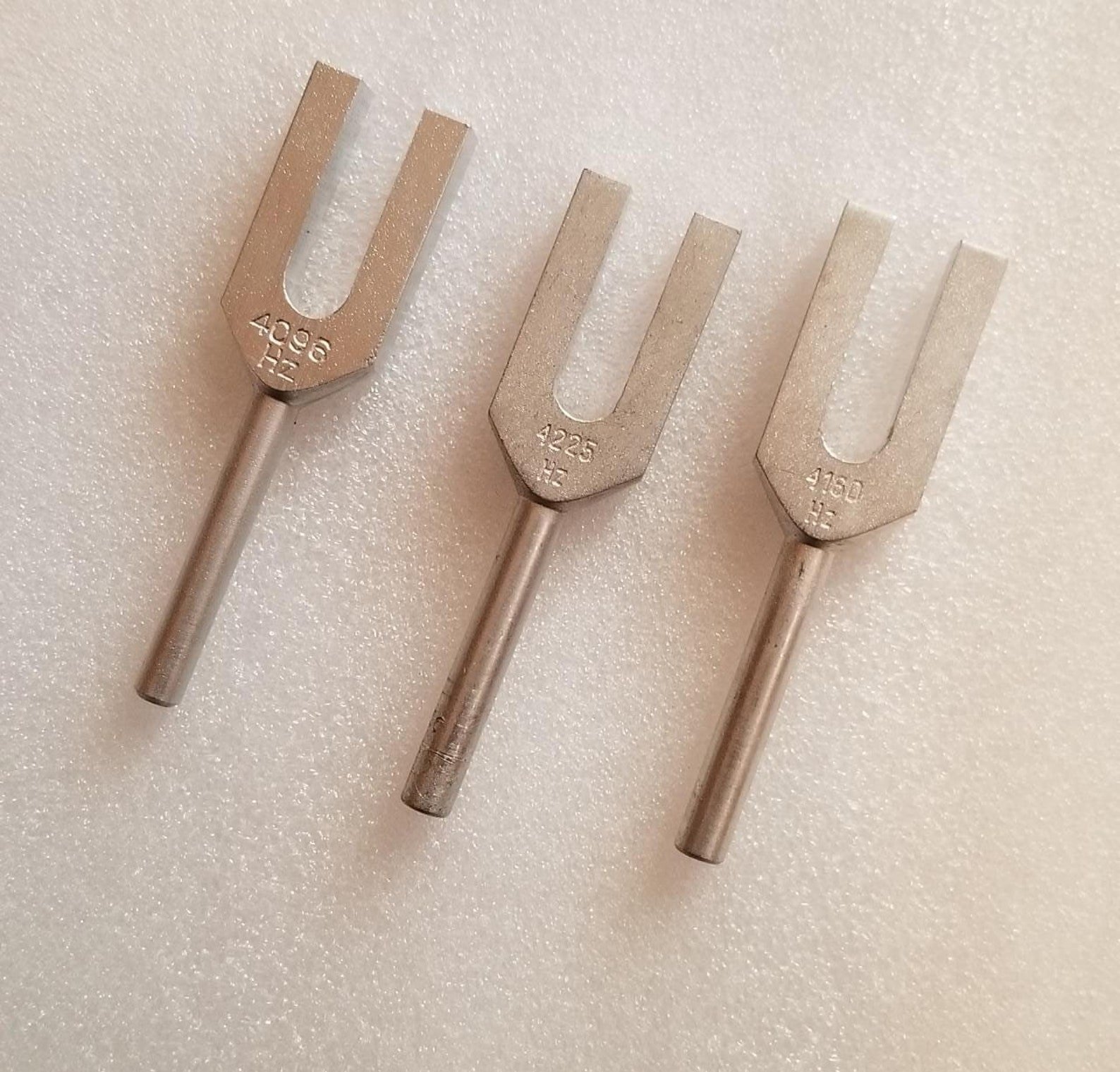 The tuning forks come with clear tone, accurate tuning and longer sound, helps you to achieve peace of mind and deep relaxation.The Angel Tuners open the door to the kingdom of angels, and connect the energy of the universe.Elimination of negative gas fields, suitable for use in offices, homes, hotels, unfamiliar environments.Professional tuning fork set that can clean crystal, start crystal, enhance the healing power of Crystal.Package Includes:1 x Tuning Fork 4096Hz.1 x Tuning Fork 4160Hz.1 x Tuning Fork 4225Hz.1 x Wooden Mallet