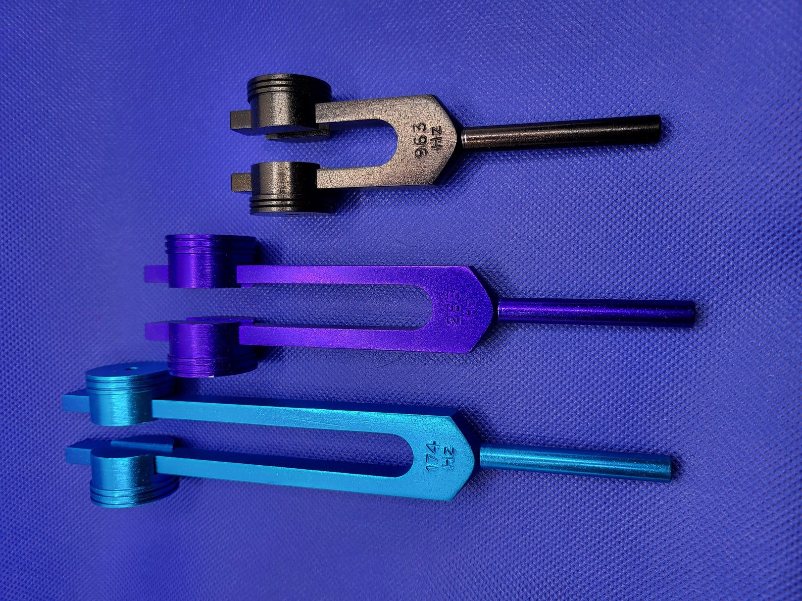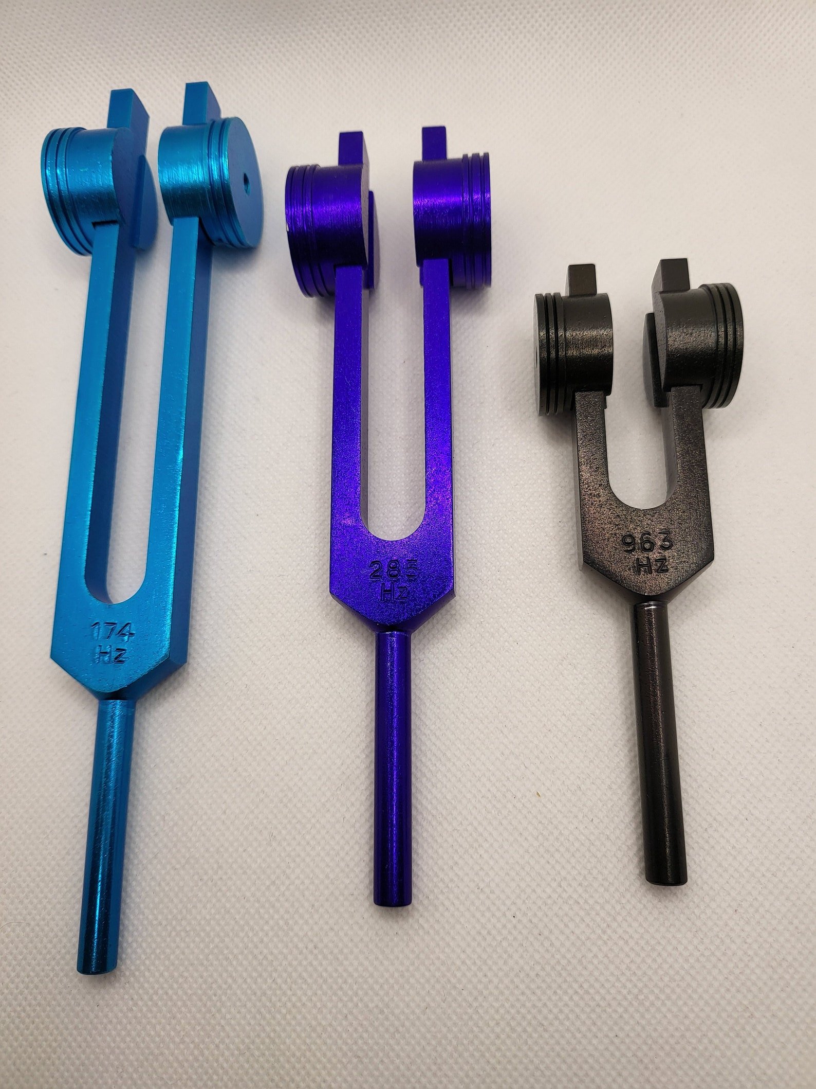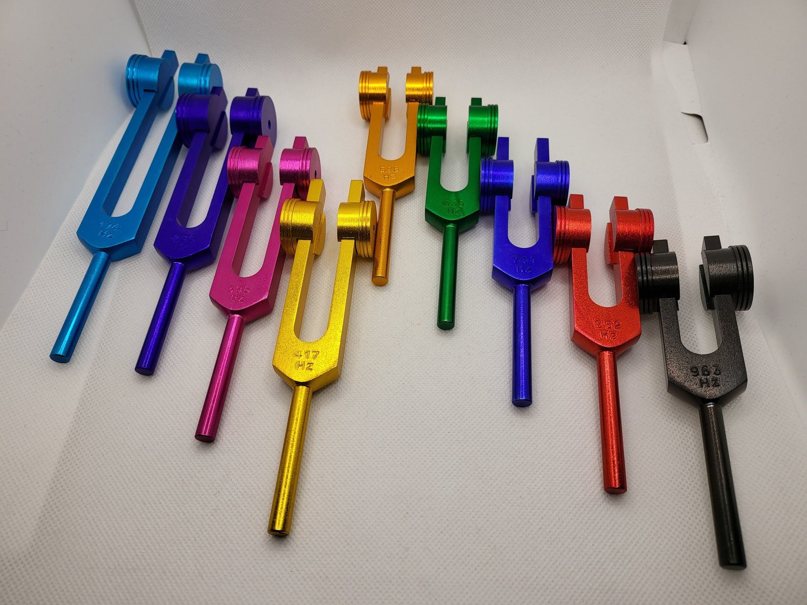 Complete set of 9 tuning forks which include the 3 missing notes* These original sound frequencies were used in Ancient Gregorian Chants.* 9 different colors* The 6 STANDARD Frequencies are Original 6 notes Ut=396 Hz (=9) (Ut quent laxis) For liberating guilt and fear Re=417 Hz (=3) (Resonare fibris)For Facilitating Change & Support Mi=528 Hz (=6) (Mira gestorum)For Transformation, Miracles and DNA Repair Fa=639 Hz (=9) (Famuli tuorum)For Connecting & Relationships Sol=741 Hz (=3) (Solve polluti)For Awakening Intuition La=852 Hz (=6) (Labii reatum)For Returning to Spirit Missing 3 notes 174 Hz (=3) 285 Hz (=6) 963 Hz (=9)